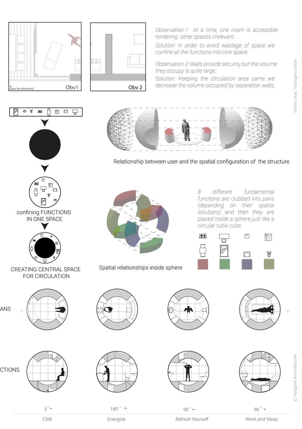 This project taught me how motion and spatial flexibility can challenge traditional notions of fixed layouts in architecture. I explored mechanical and rotational systems to optimize space usage, learning to design with efficiency, ergonomics, and minimal user movement in mind. It also strengthened my understanding of compact living strategies, modular design thinking, and how unconventional ideas — like a rotating interior — can reshape user experience in small-scale architecture.